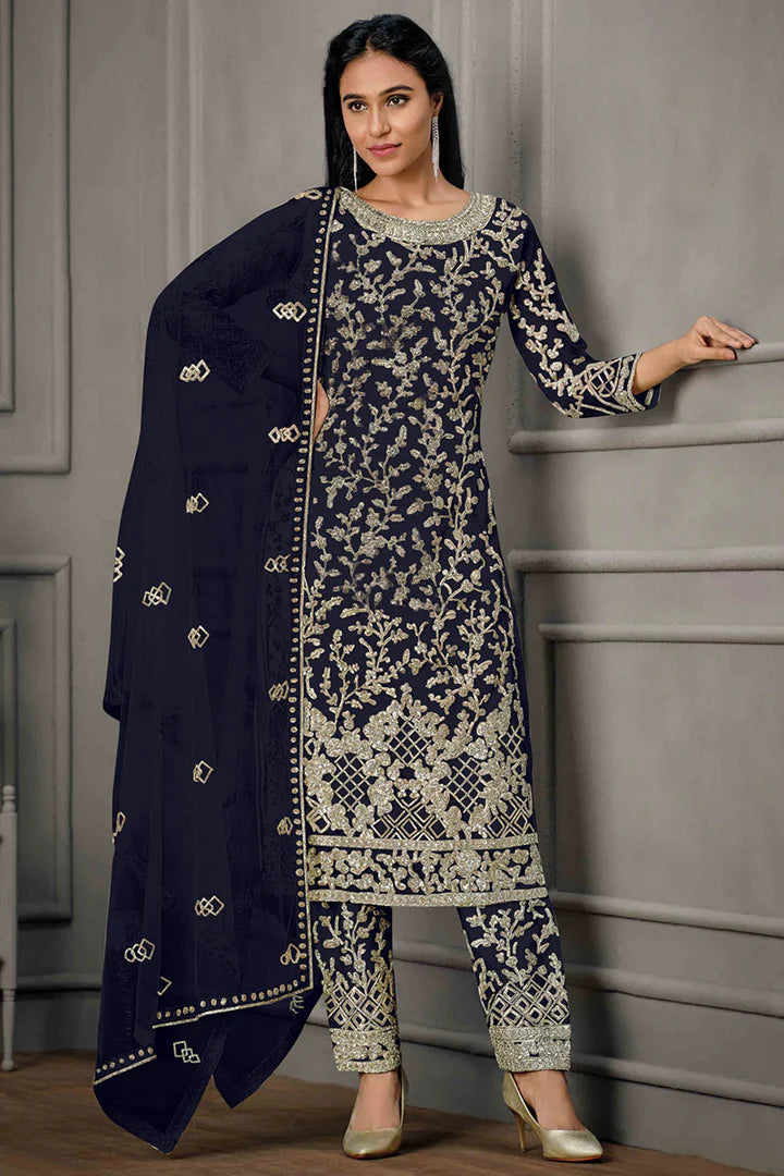 Navy Blue Sequin Embroidered Trouser Suit Navy Blue Sequin Embroidered Trouser Suit